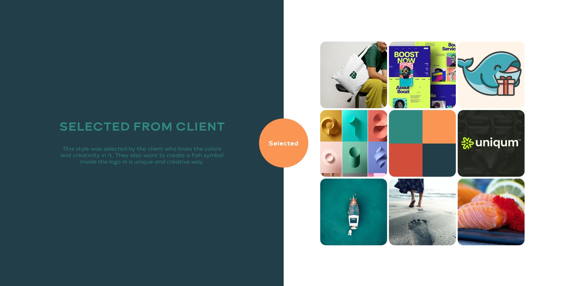 Used, basic geometric shapes and converted to strong logo identity symbol. This symbol is presenting fish and latter A.